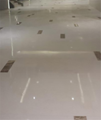 4、石材濕貼法安裝時,水泥沙漿在固化過程中,沙漿中的色素雜質透過石材的縫隙和裂紋滲透到石材表面,形成色斑和色線等,特別在一些淡色或白色石材中(如漢白玉,卡拉拉白,西班牙米黃)最易出現這樣的情況。